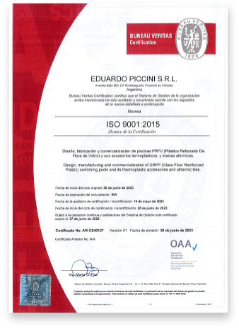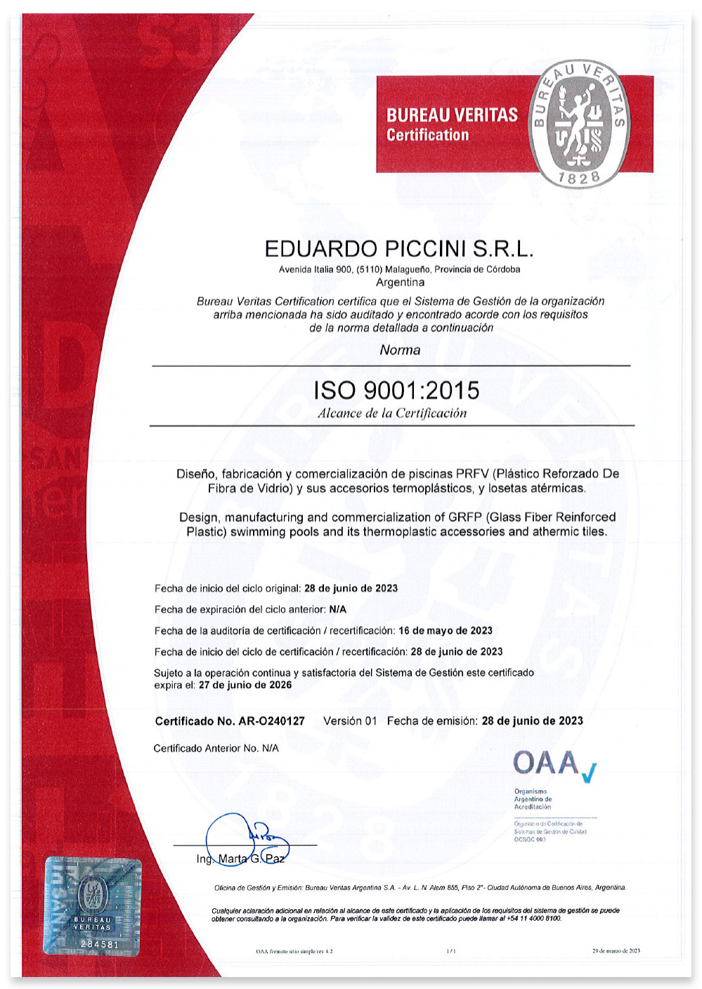 Nuestro sistema de gestión Diseño, Producción y Comercialización está certificado según la norma ISO 9001 por Bureau Veritas Certification.